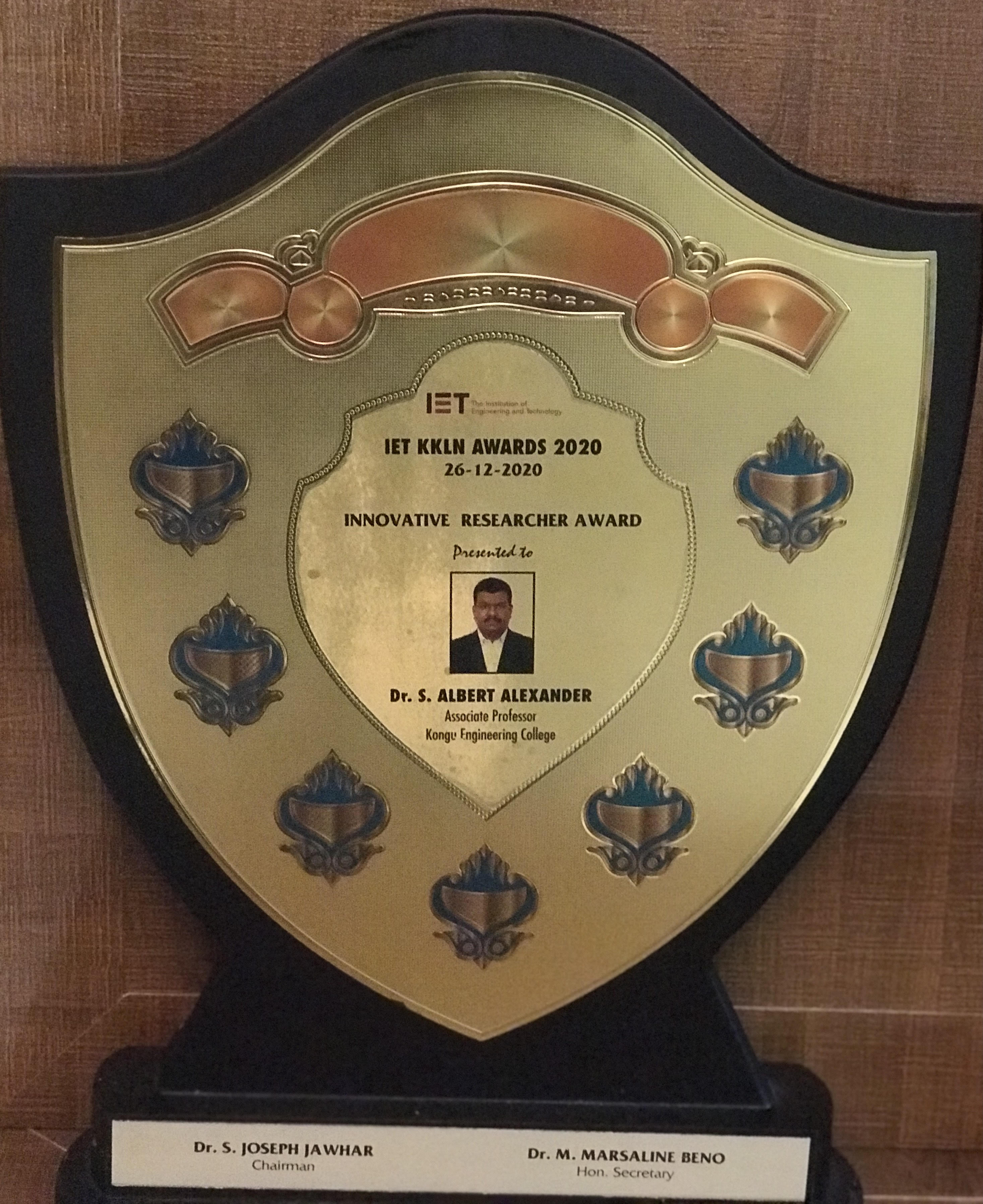 Received INNOVATIVE RESEARCHER AWARD from IET - 26.12.2020